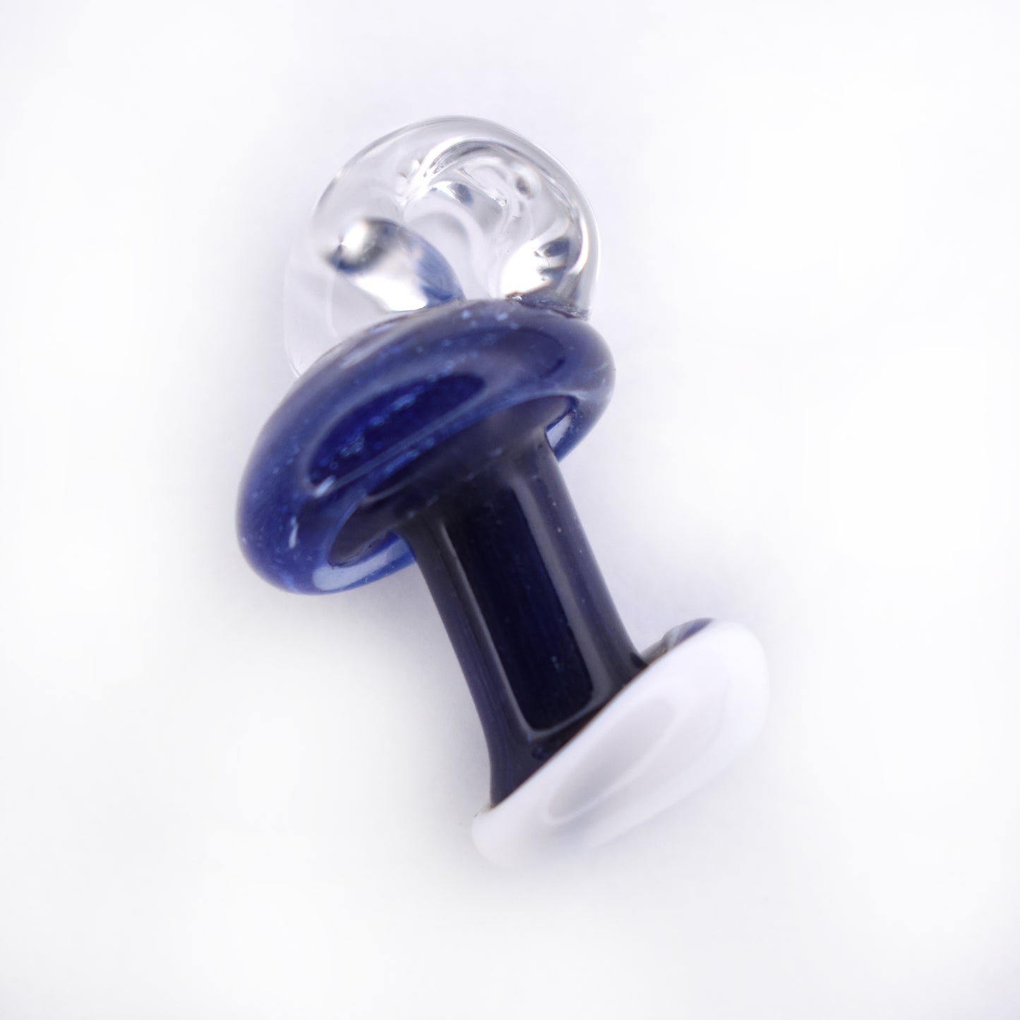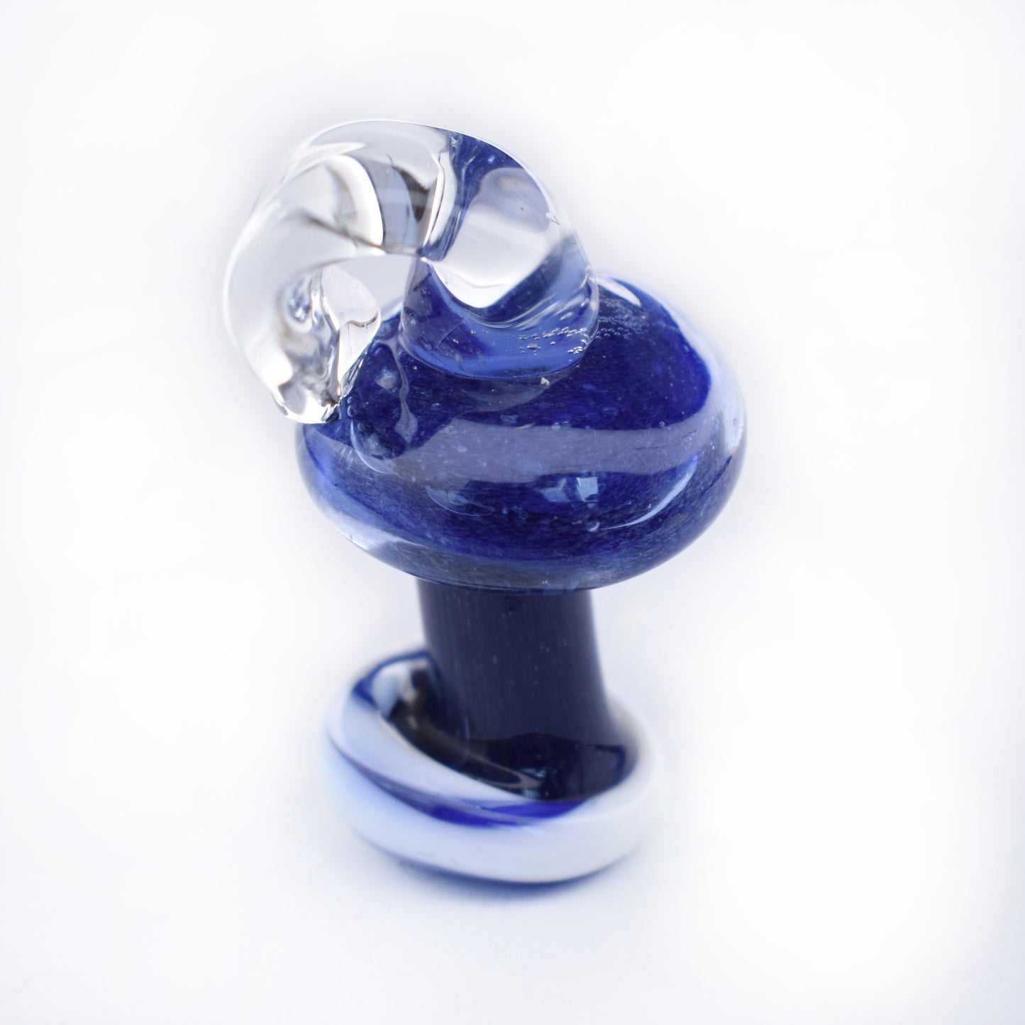 Cobalt Sprout is a sweet little pendant inspired by the magic of unexpected growth. Shaped like a fresh forest mushroom, it features a vibrant cobalt blue cap and a smooth, clear stem—like a tiny sprout peeking up from moss-covered ground after rain.