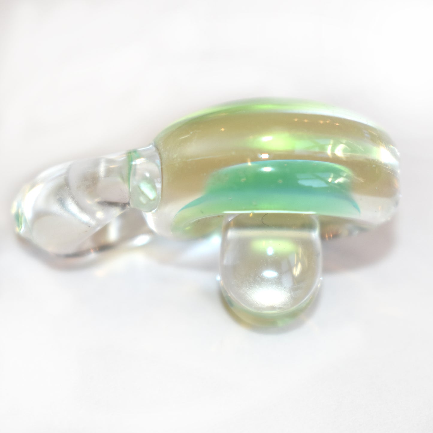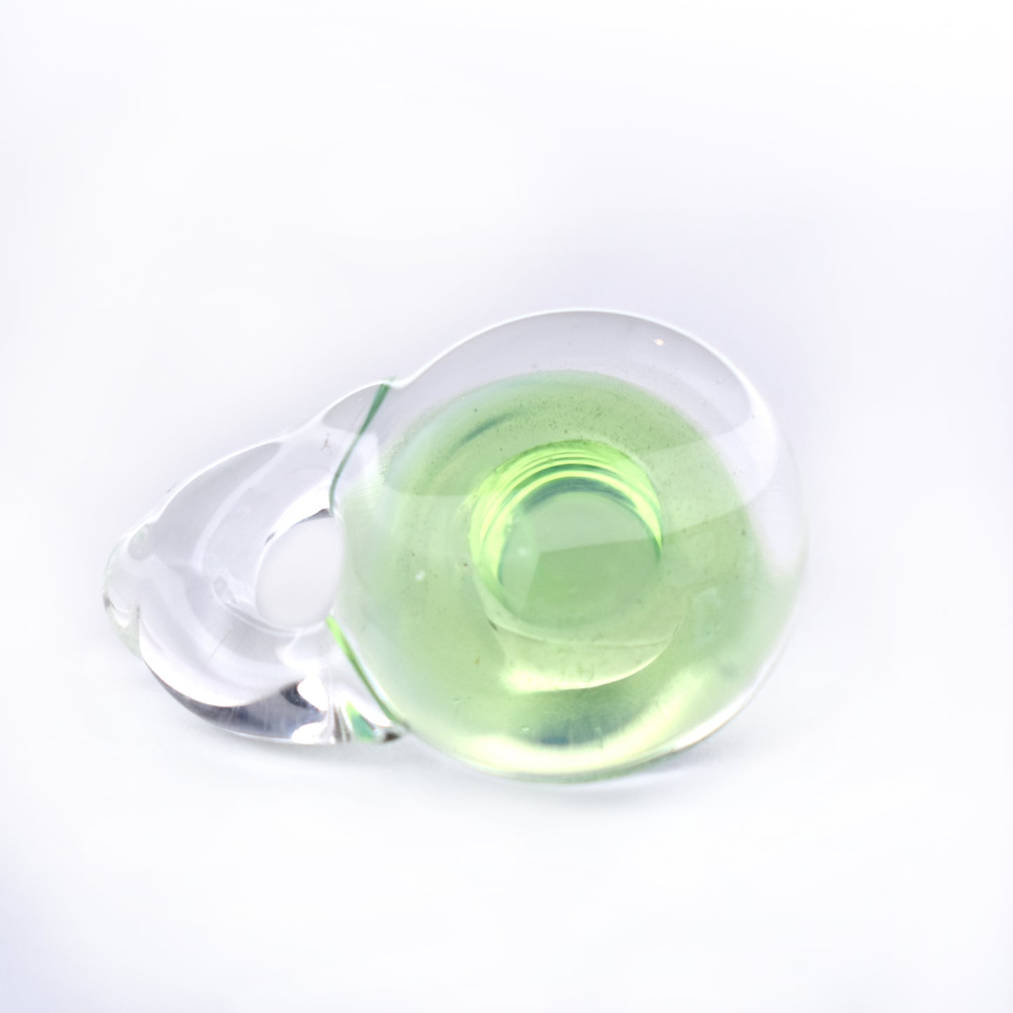 This pendant features a centered green core suspended within clear glass, creating a sense of depth and calm. The circular form and subtle color gradient give it an organic, balanced appearance—like a drop of dew holding a hint of spring.