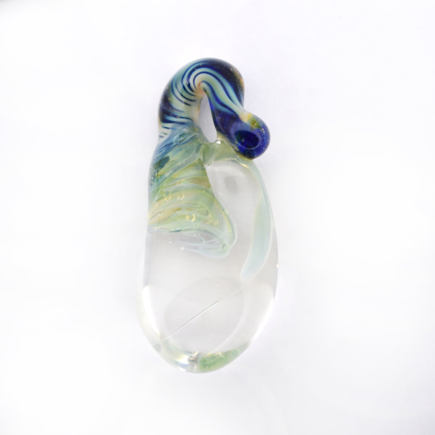 Twistspore is a dynamic, sculptural pendant shaped by nature’s wild side. Its curled cap spirals upward in deep blues and purples, while soft green and golden tones swirl beneath—like a mushroom caught mid-growth, full of energy and motion.